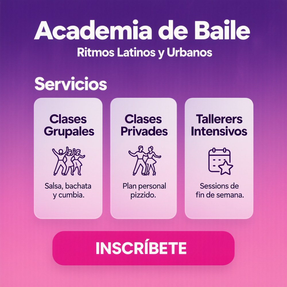 Descubre el placer de moverte al ritmo de la música. En nuestra academia de baile transformamos cada paso en una experiencia divertida, saludable y llena de energía. Ofrecemos clases para todos los niveles —desde principiantes hasta avanzados— con estilos como salsa, bachata, hip hop, cumbia y más